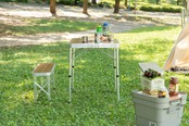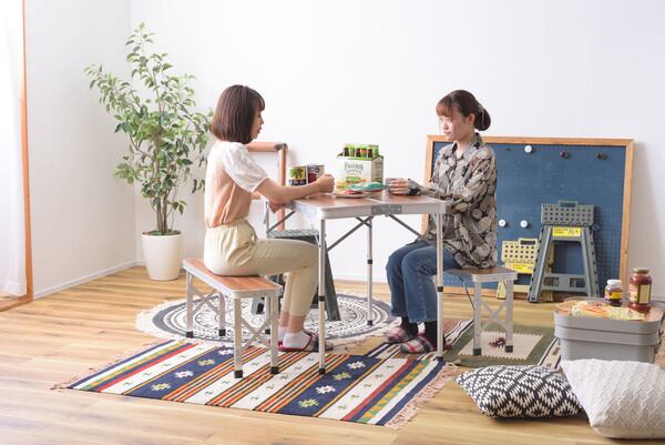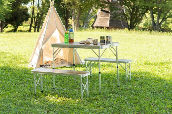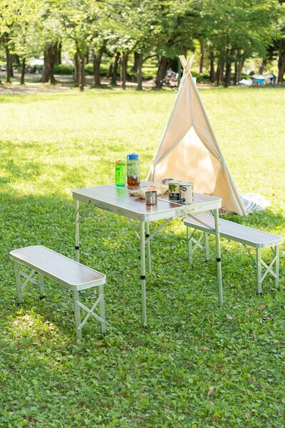 サイズ: テーブル W120×D75×H70 / ベンチ W120×D35×H45